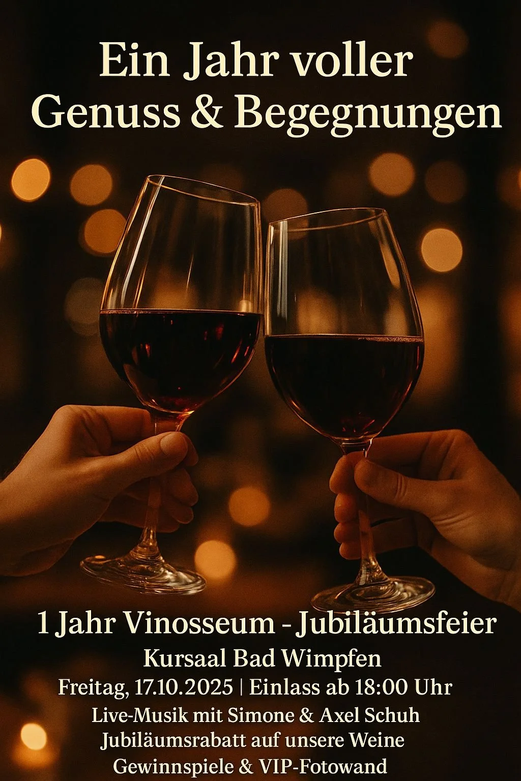 Willkommen im Vinosseum La Rocca, Ihrem Ort für außergewöhnliche Weine und Gastfreundschaft. Wir bieten Ihnen ein wunderschönes Ambiente im Herzen von Bad Wimpfen, bei dem jeder Weinliebhaber fündig wird. Kommen Sie vorbei, genießen Sie die deutsch-italienische Lebensfreude und lassen Sie sich von unserer Auswahl begeistern! Ob allein, zu zweit oder mit Freunden – erleben Sie in entspannter, familiärer Atmosphäre die Freude am Wein. Lassen Sie sich von unserem Angebot und unserer Leidenschaft inspirieren und nehmen Sie sich Zeit, den perfekten Wein für sich zu finden.